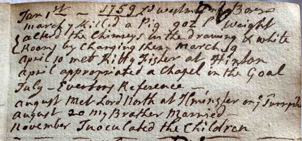 [ii] Diary of Edward Phelips V, entry for 1759. The diary is part of the Phelips MSS held at Montacute House. Image of the diary entry © The Somerset Country House.
